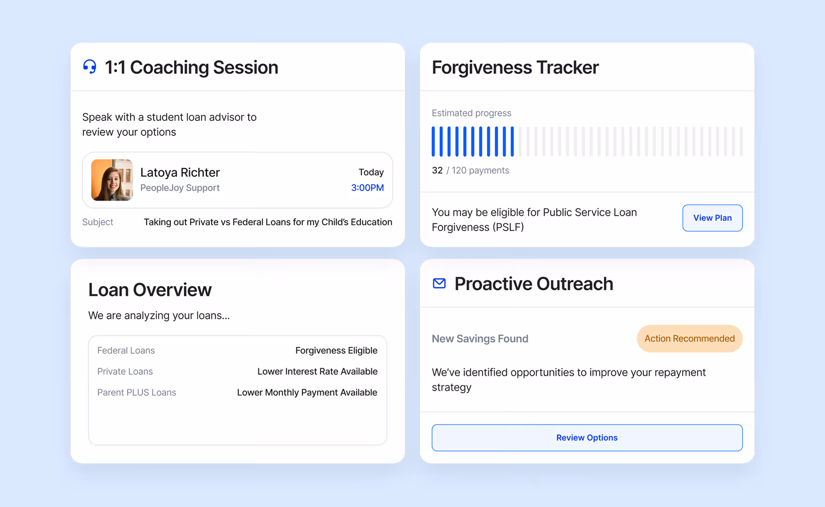 PeopleJoy turns tuition assistance and student loan benefits into a strategic workforce investment—supporting retention, career mobility, and long-term talent stability.